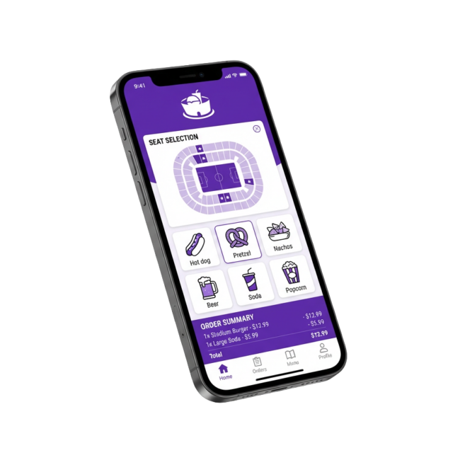 Fans browse concession menus, order, pay, and get food delivered directly to their seat — all inside the arena.